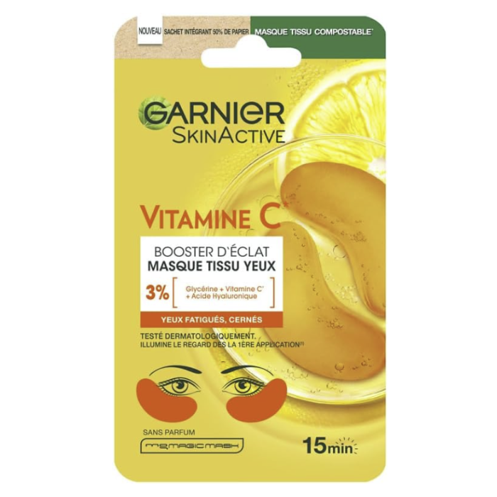 A HIGHLY CONCENTRATED FORMULA: This Garnier eye care mask is highly concentrated (3%) in glycerin and hyaluronic acid to deeply moisturize the facial skin and in vitamin C known for illuminating the complexion daily.