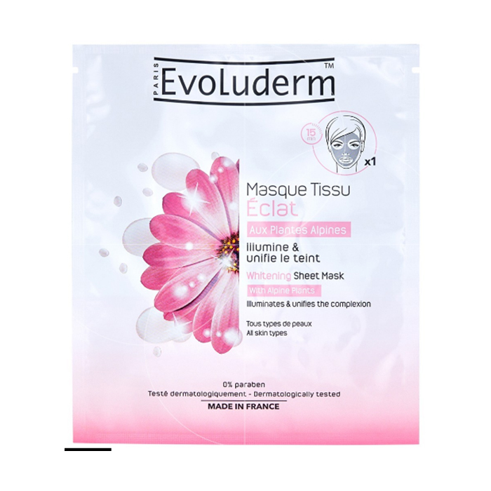 Evoluderm brings you all the benefits of fresh Alpine plants in this radiant fabric mask that unifies your skin texture and reveals your natural glow. Easy to apply, it only takes 15 minutes to get a radiant new look.
