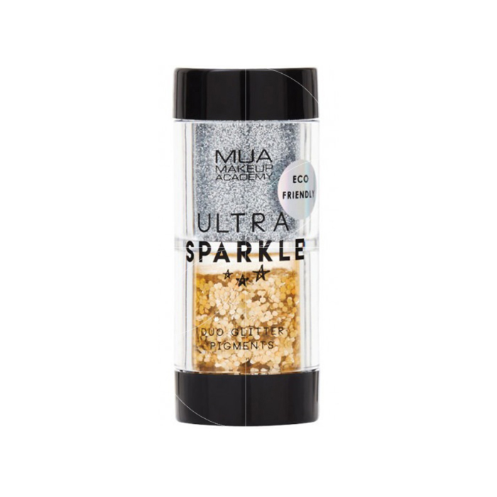 MUA Makeup Academy Ultra Sparkle Duo Glitter Bang Bang Glitter Pigments, biodegradable, which can be applied to face and body for ultimate shine!