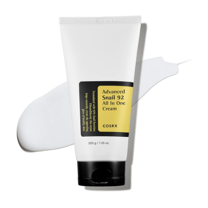 Daily repair cream: Infused with 92% snail mucin (snail secretion filtrat), this cream creates a hydrating barrier to plump, moisturize and soothe the skin. This multi-solution daily cream glides on the skin and restores radiance without leaving any sticky residue.
